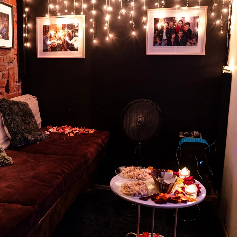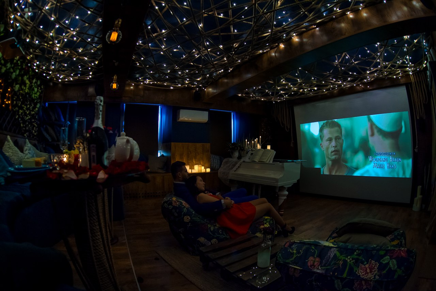 Еду и напитки можно приносить с собой или заказать в любом из ресторанов/кафе, которые находятся поблизости от кинотеатра. Непосредственно у нас мы предлагаем фондю, закуски, попкорн, напитки, лед. Организуем сервировку стола, предоставляем всю необходимую посуду (тарелки, бокалы, приборы и др.).